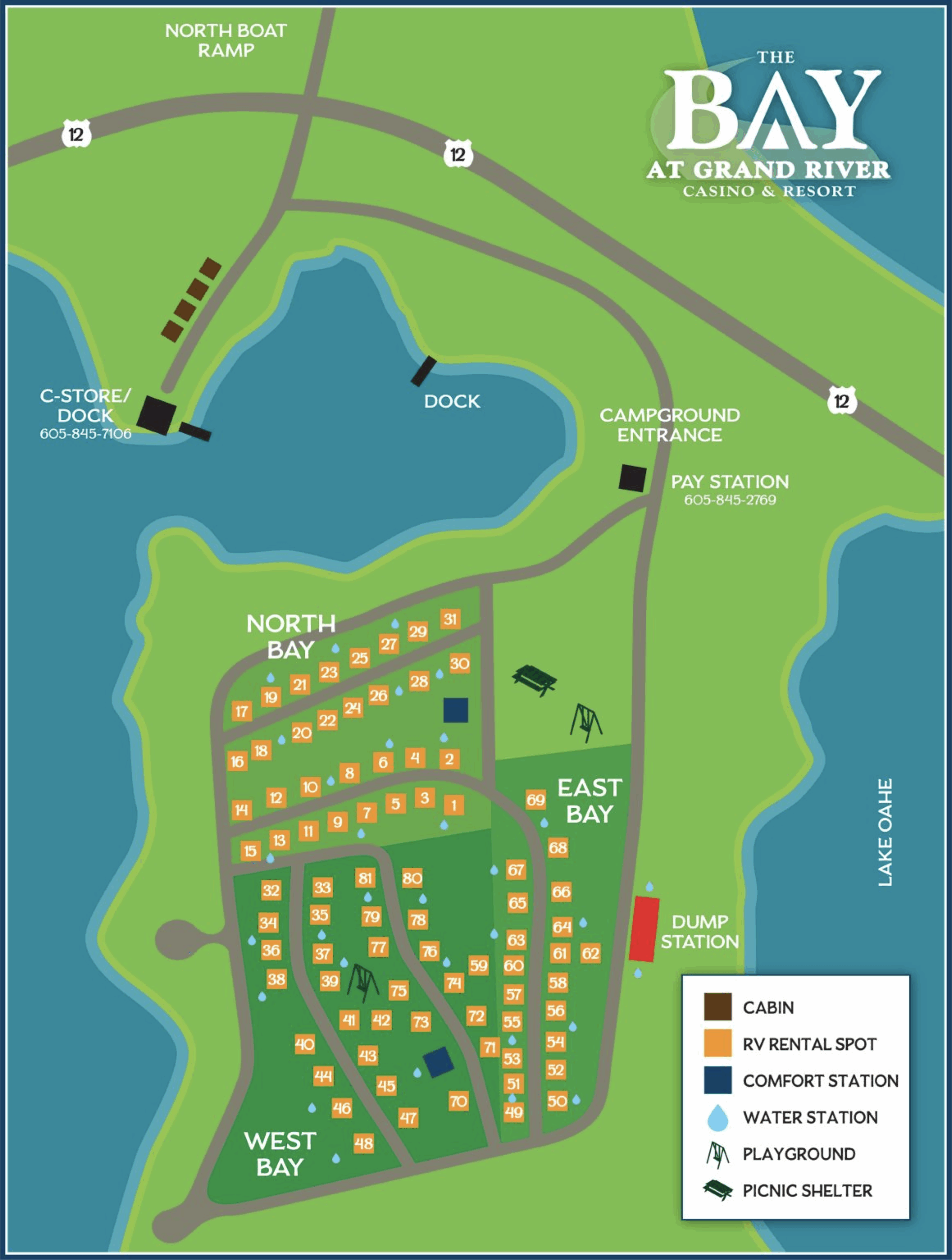 Just down the hill from Grand River Casino, The Bay is your all-in-one lakeside retreat. Whether you’re here to unwind in a fully furnished cabin, set up camp under the stars, or launch your boat onto Lake Oahe, The Bay has everything you need to make the most of the outdoors.